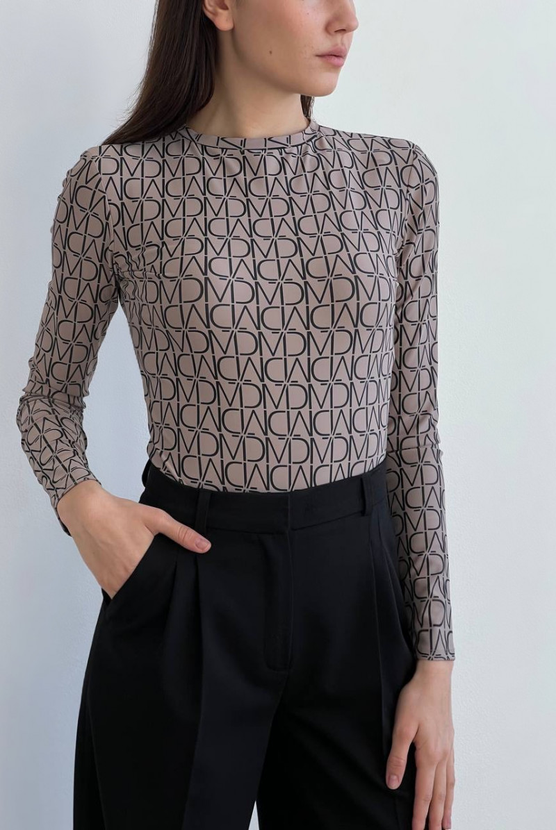 Боди из бифлекса с длинным рукавом, круглая горловина, рисунок татуировки.