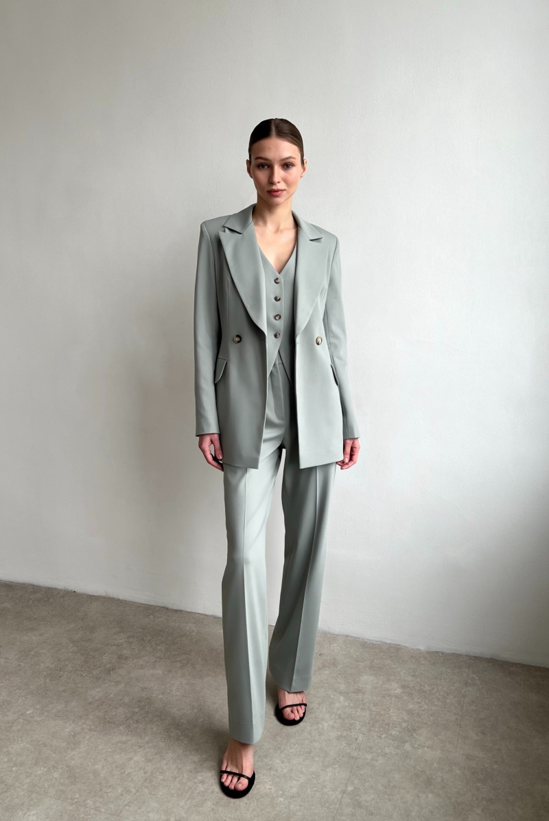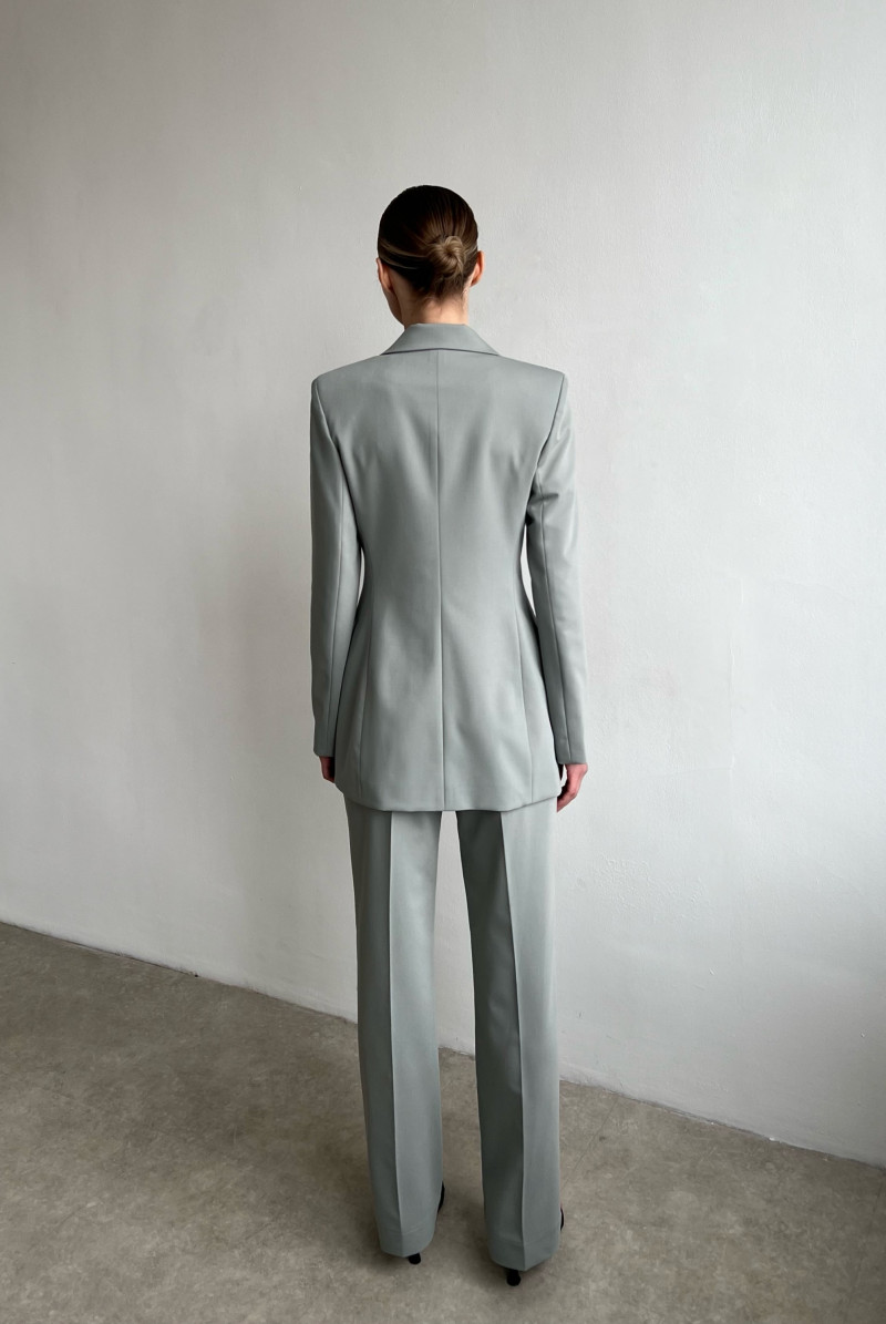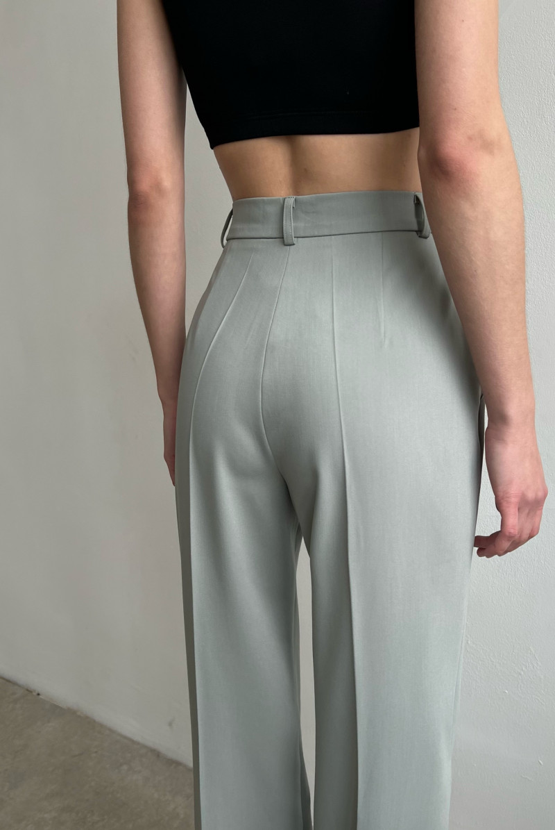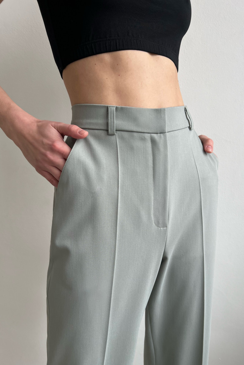 Прямые брюки с посадкой "на талии" со стрелками. Карманы спереди (с отрезным бочком). На поясе шлёвки. Застежка гульфик с молнией.