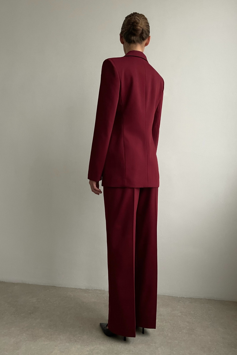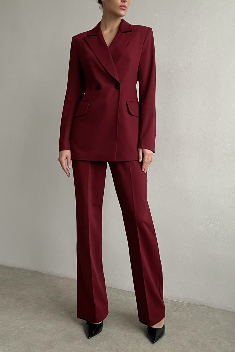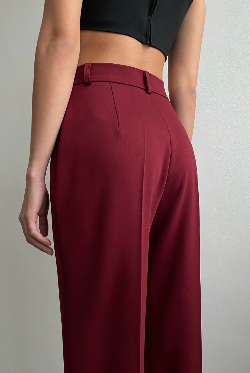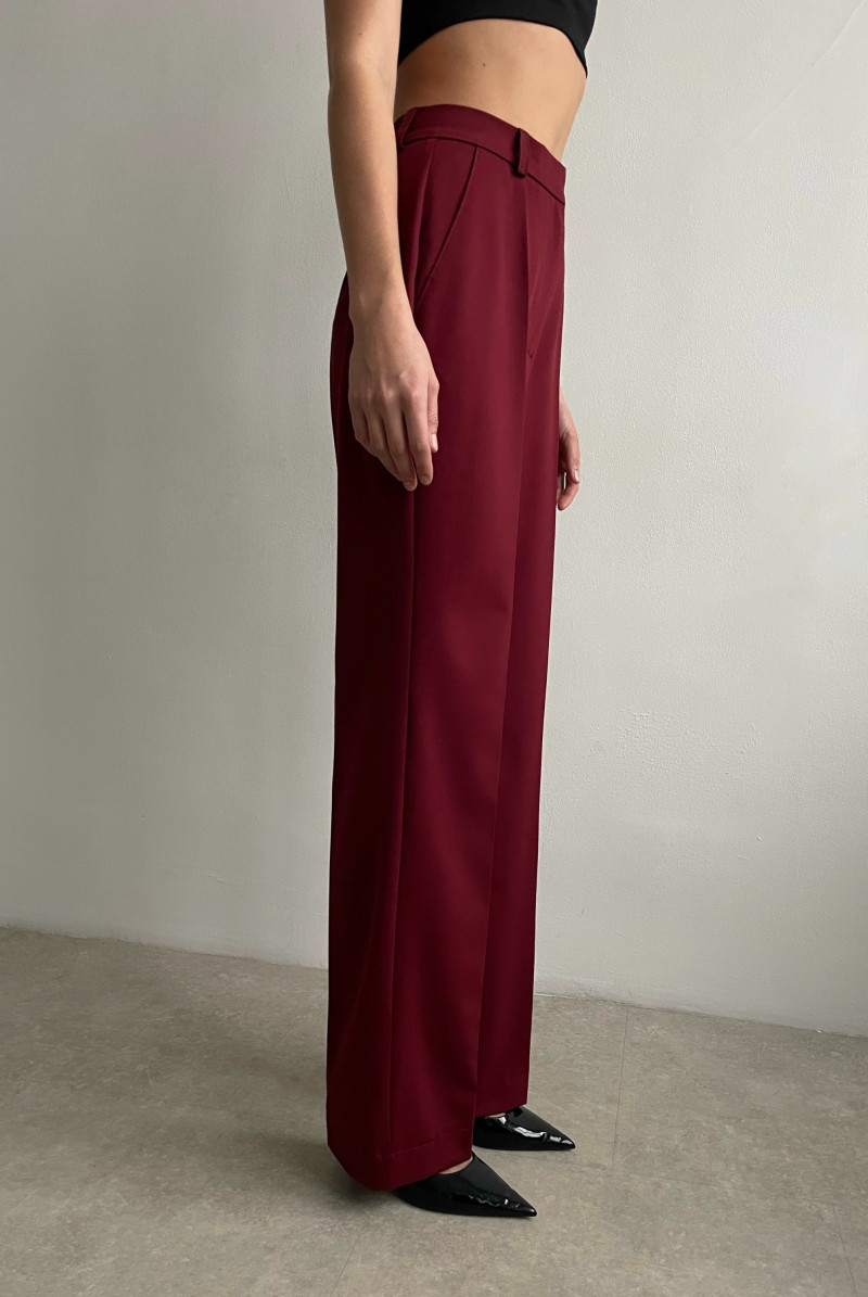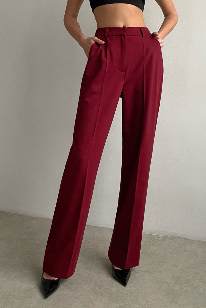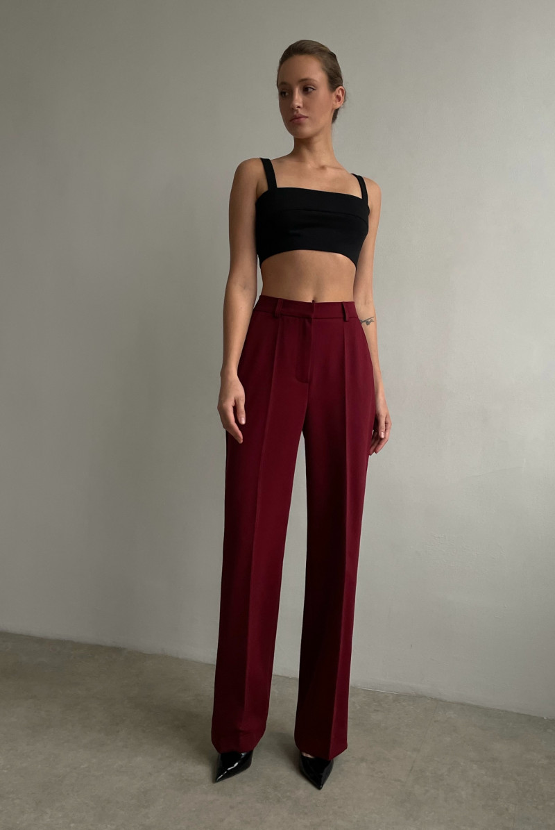 Прямые брюки с посадкой "на талии" со стрелками. Карманы спереди (с отрезным бочком). На поясе шлёвки. Застежка гульфик с молнией.