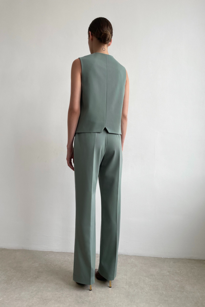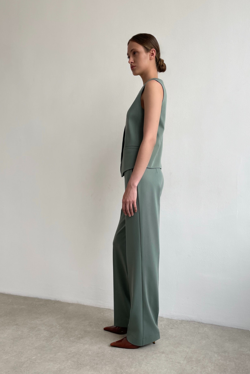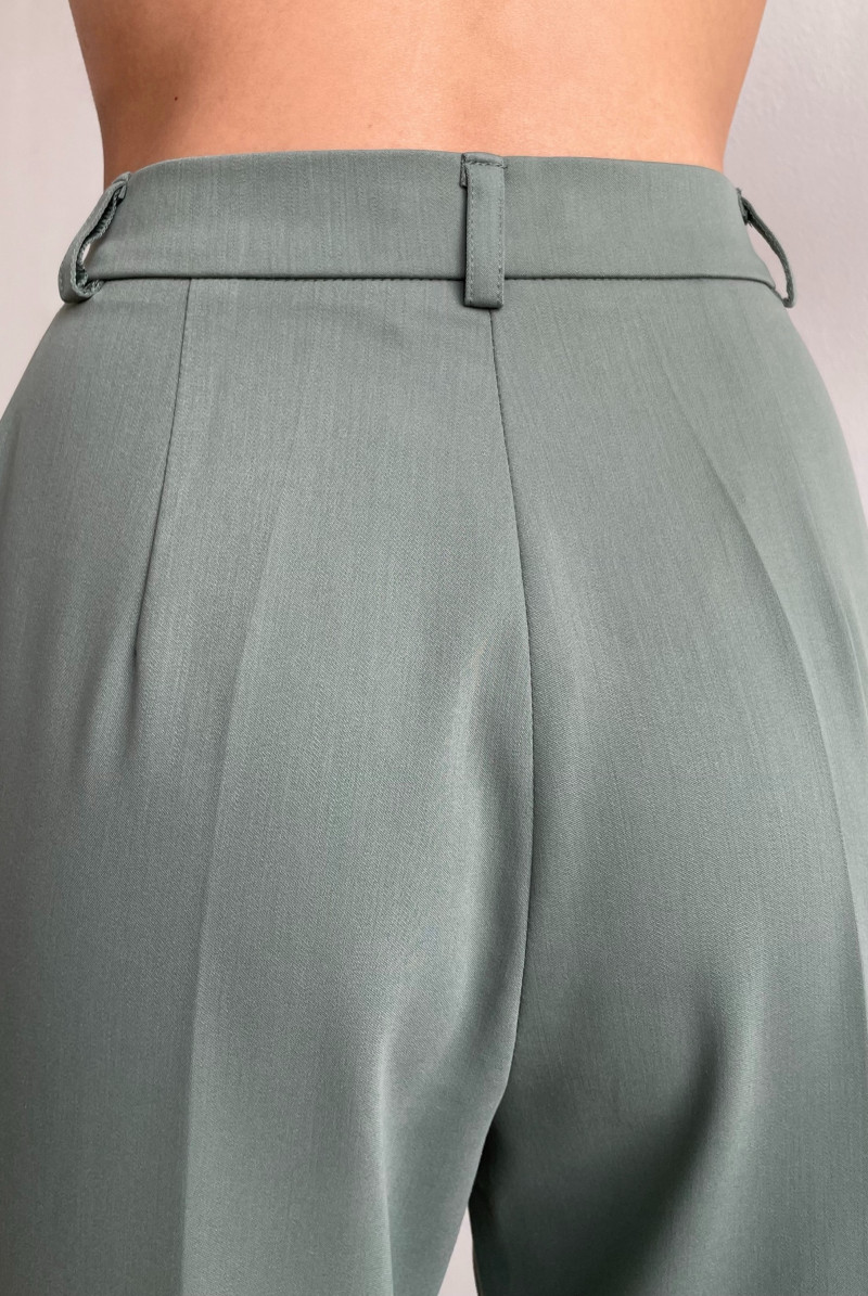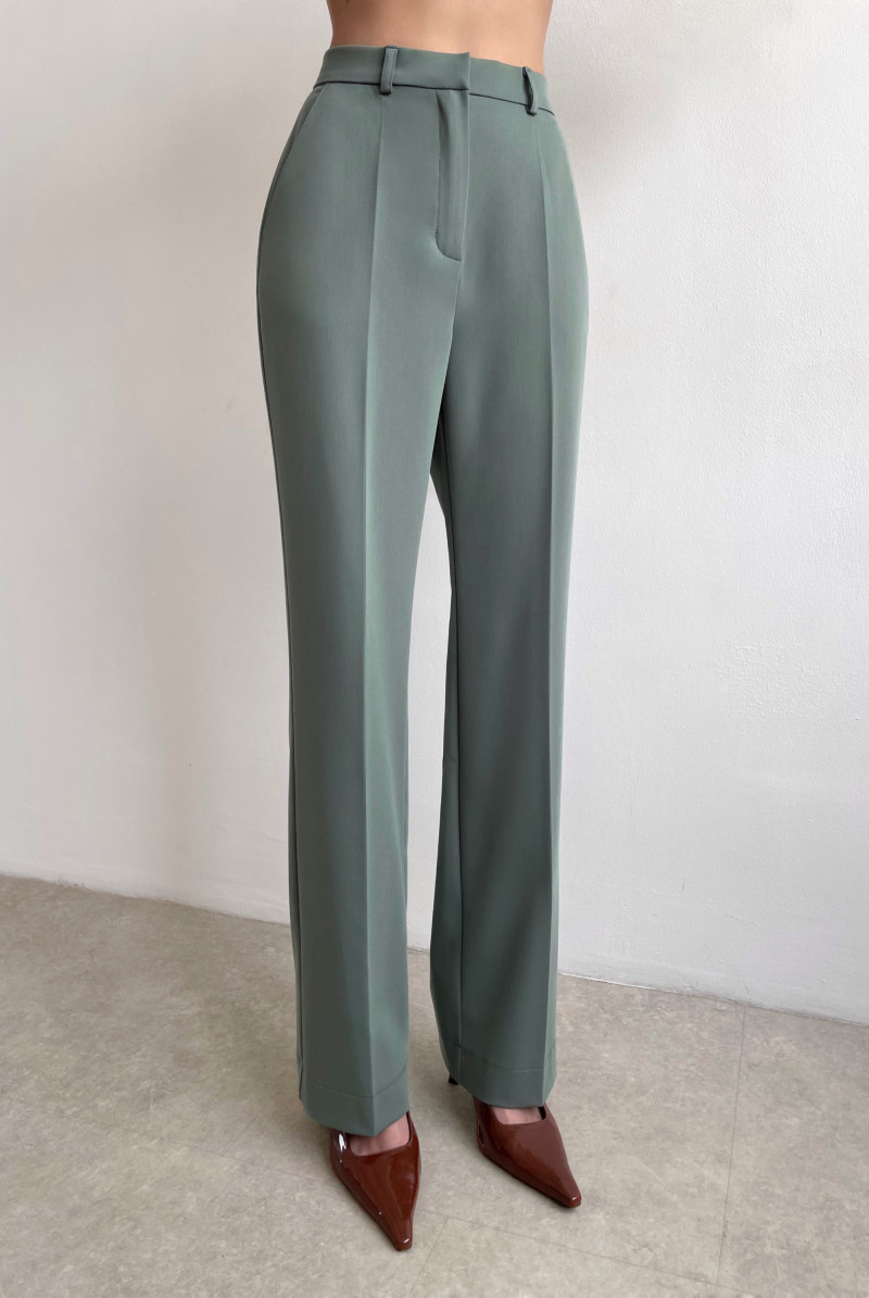 Прямые брюки с посадкой "на талии" со стрелками. Карманы спереди (с отрезным бочком). На поясе шлёвки. Застежка гульфик с молнией.
