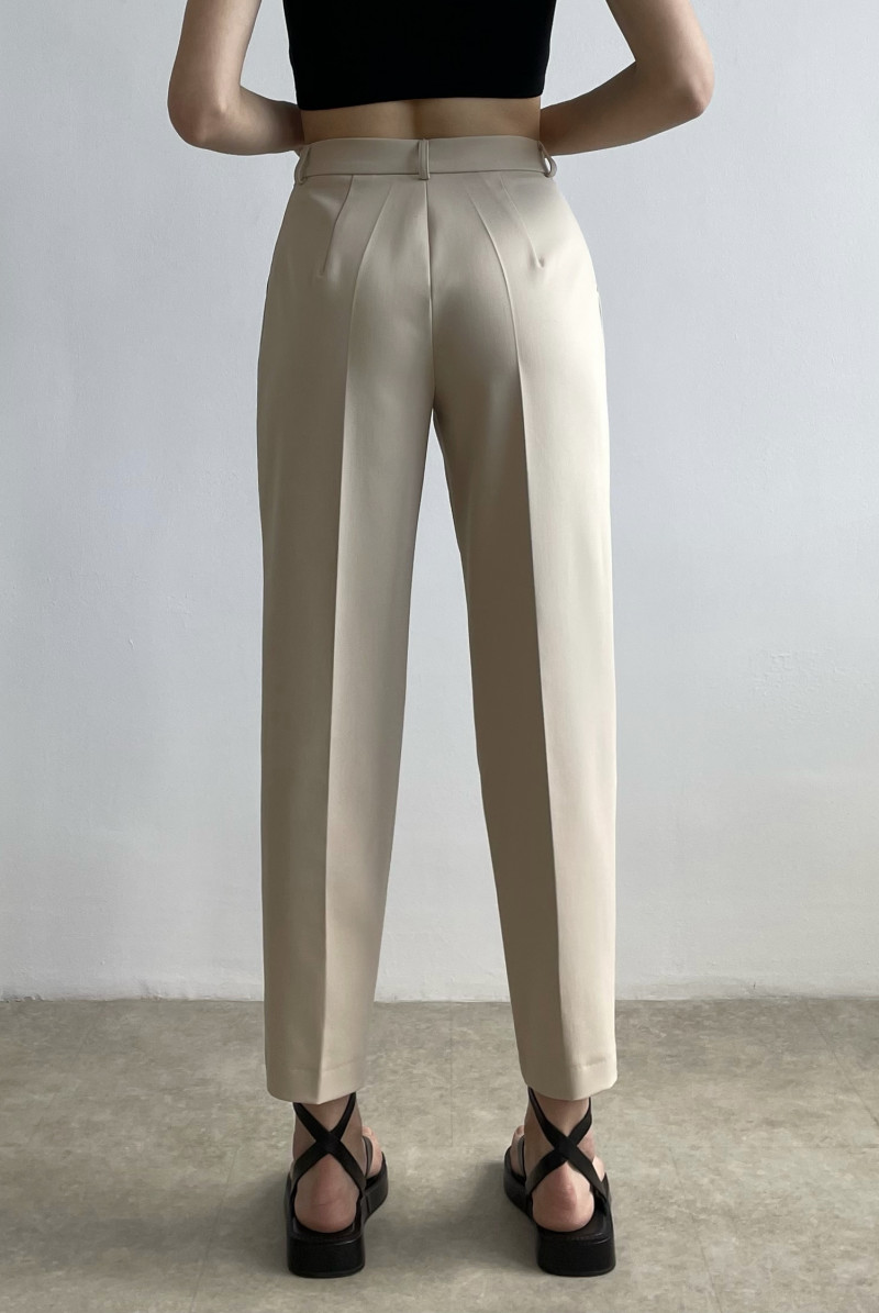 Брюки из костюмной ткани зауженные к низу. По талии складки. Застежка "гульфик".