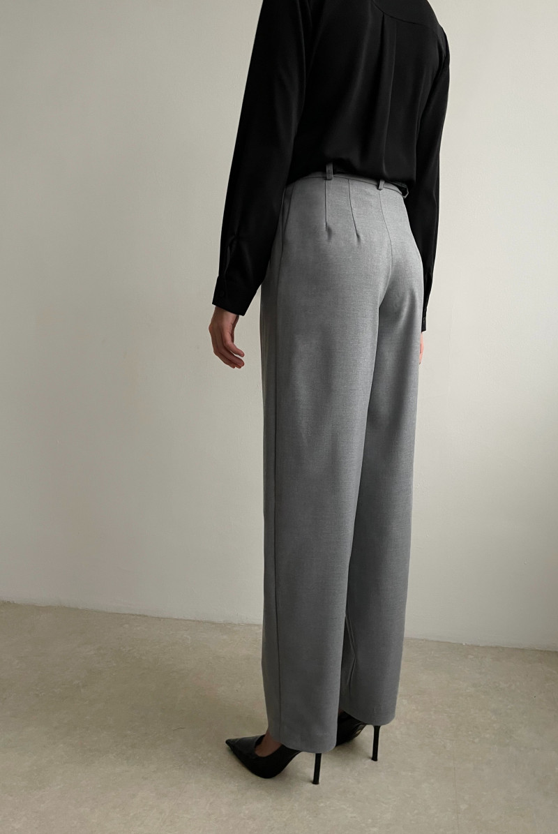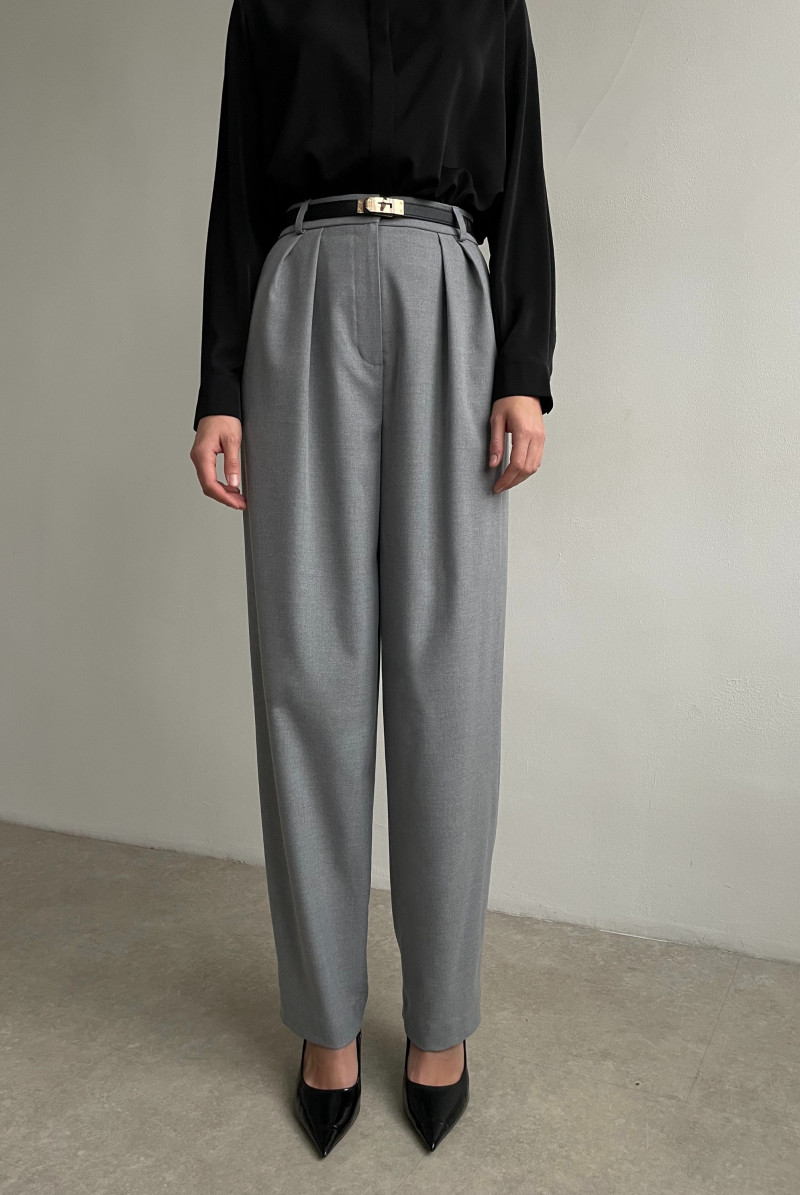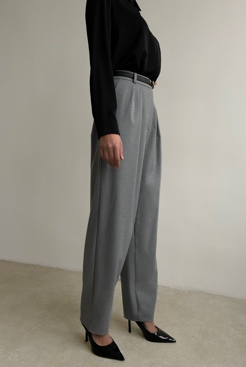 Брюки "бананы" со складками, посадкой на талии. Застёжка на молнию и потайной крючок спереди. Карманы спереди.