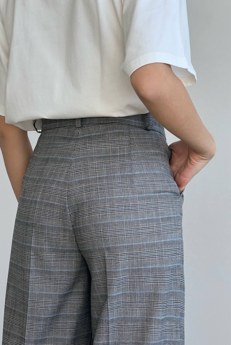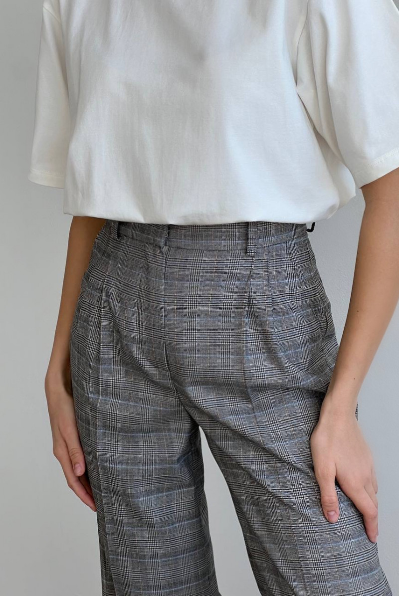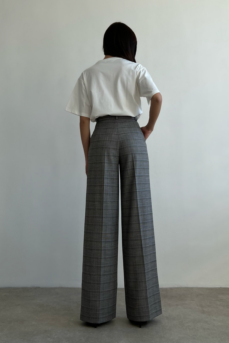 Брюки свободного кроя на поясе со шлевками, по переду складки, карманы в боковых швах.
