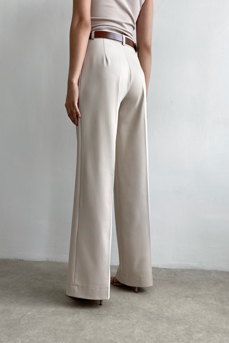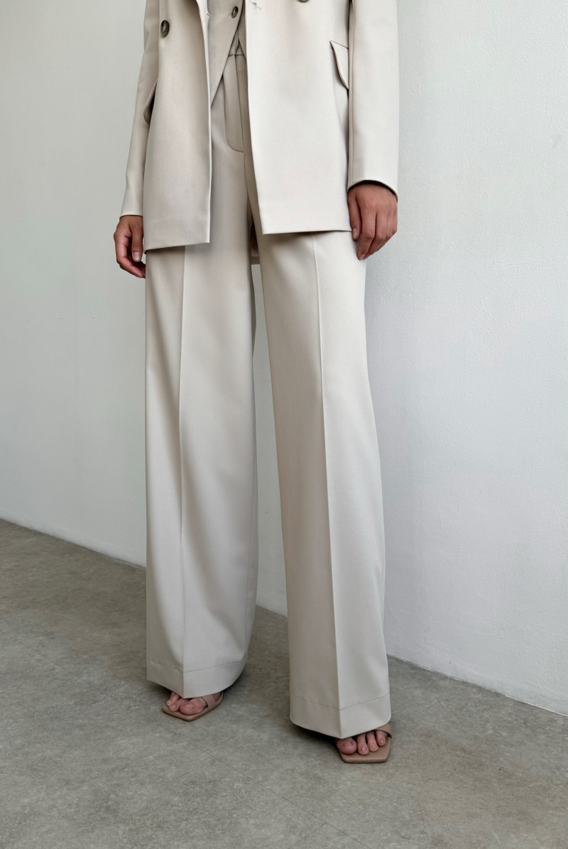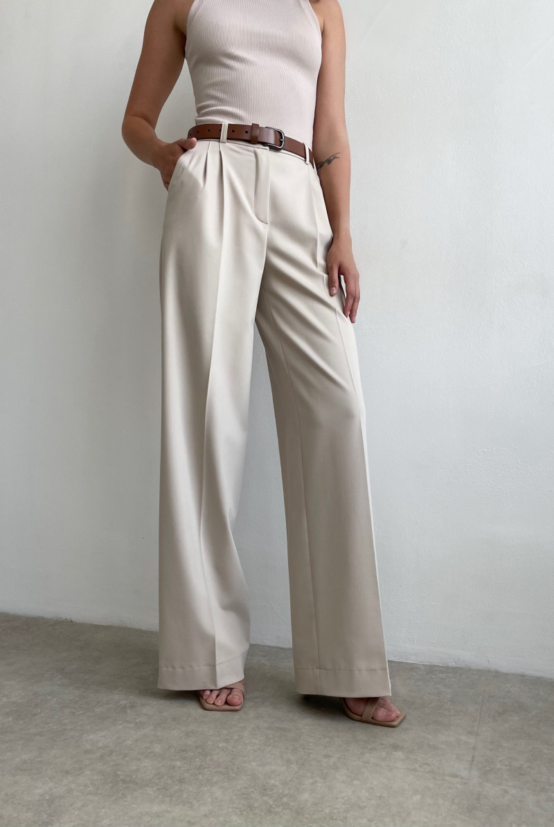 Брюки свободного кроя на поясе со шлевками, по переду складки, карманы в боковых швах.