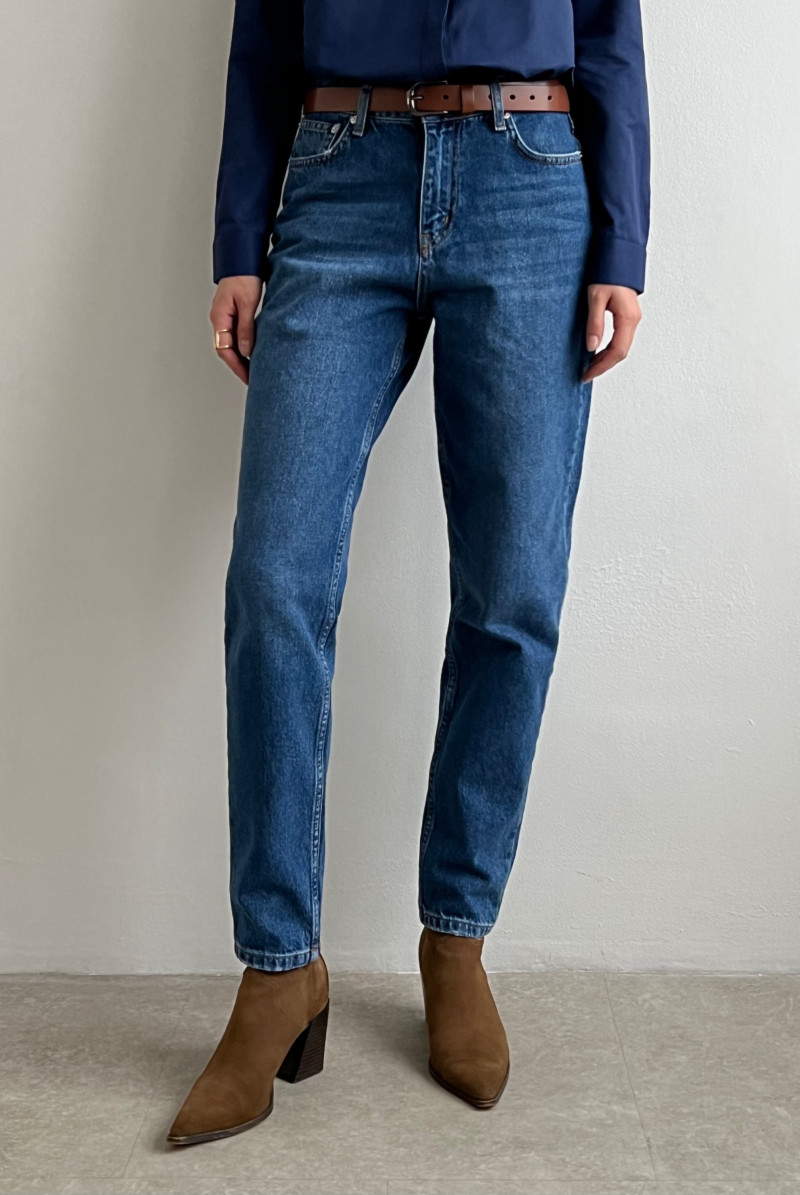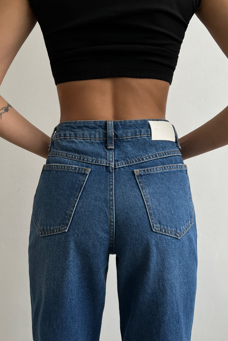Джинсы "мамсы" с посадкой на талии.