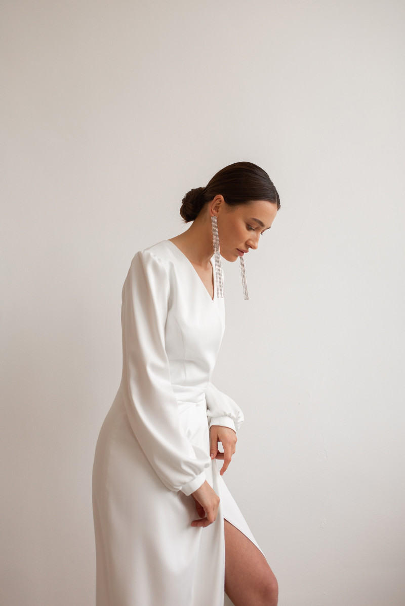 Параметры изделия: Длина юбки платья от талии 109 см. Длина рукава 62 см.