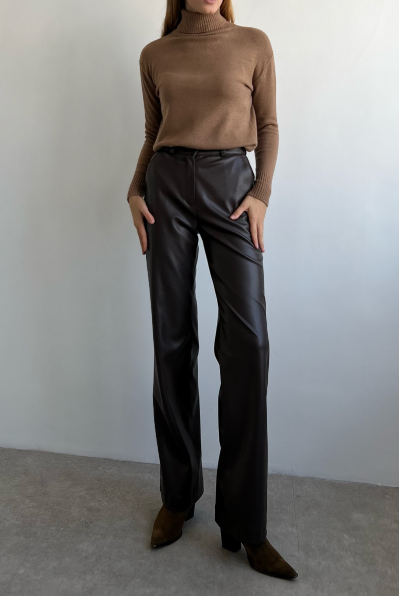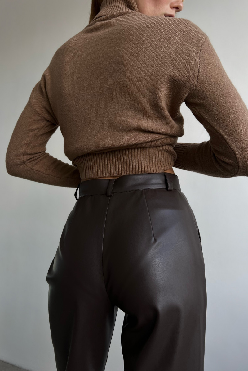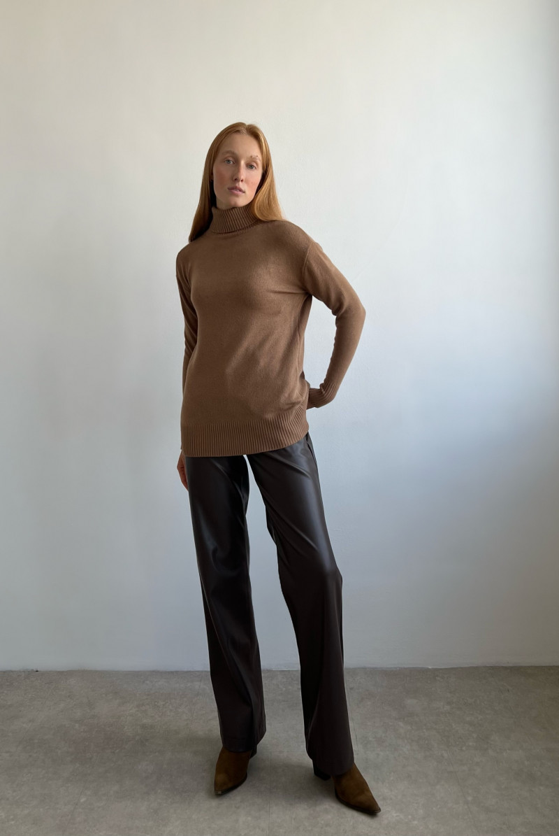 Джемпер-водолазка свободного кроя с длинным рукавом, спущенная линия плеча. Ворот-стойка с отворотом.