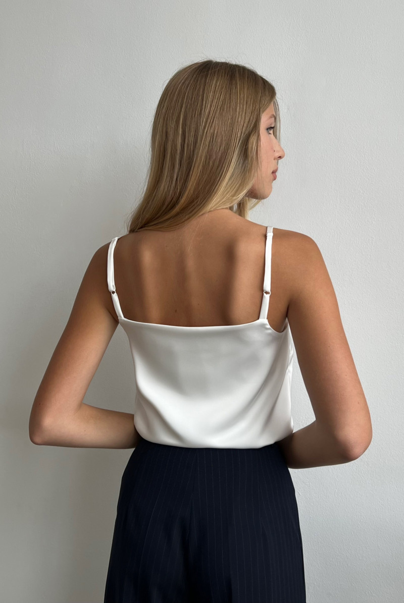 Топ прямоугольный на бретельках с разрезами в боковых швах.