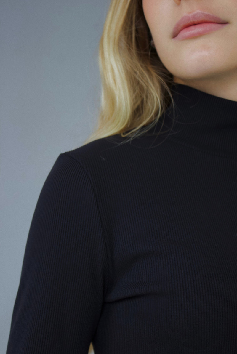 Водолазка из хлопкового трикотажа в рубчик с воротником и длинными рукавами.
