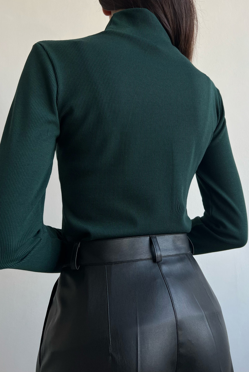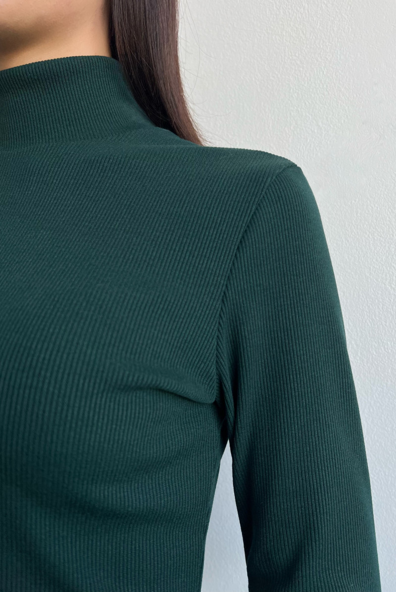 Водолазка из хлопкового трикотажа в рубчик с воротником и длинными рукавами.