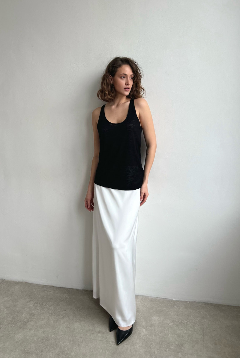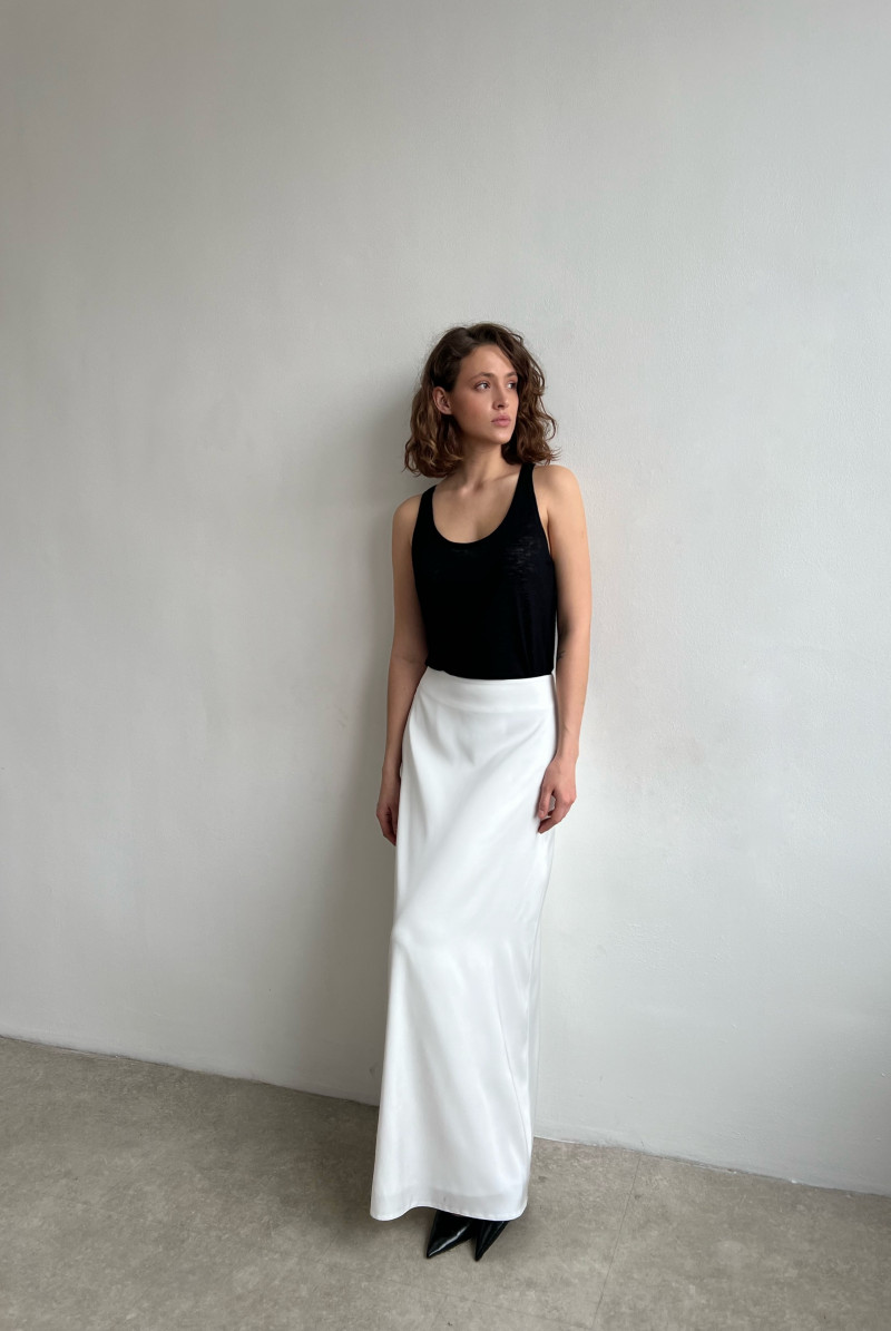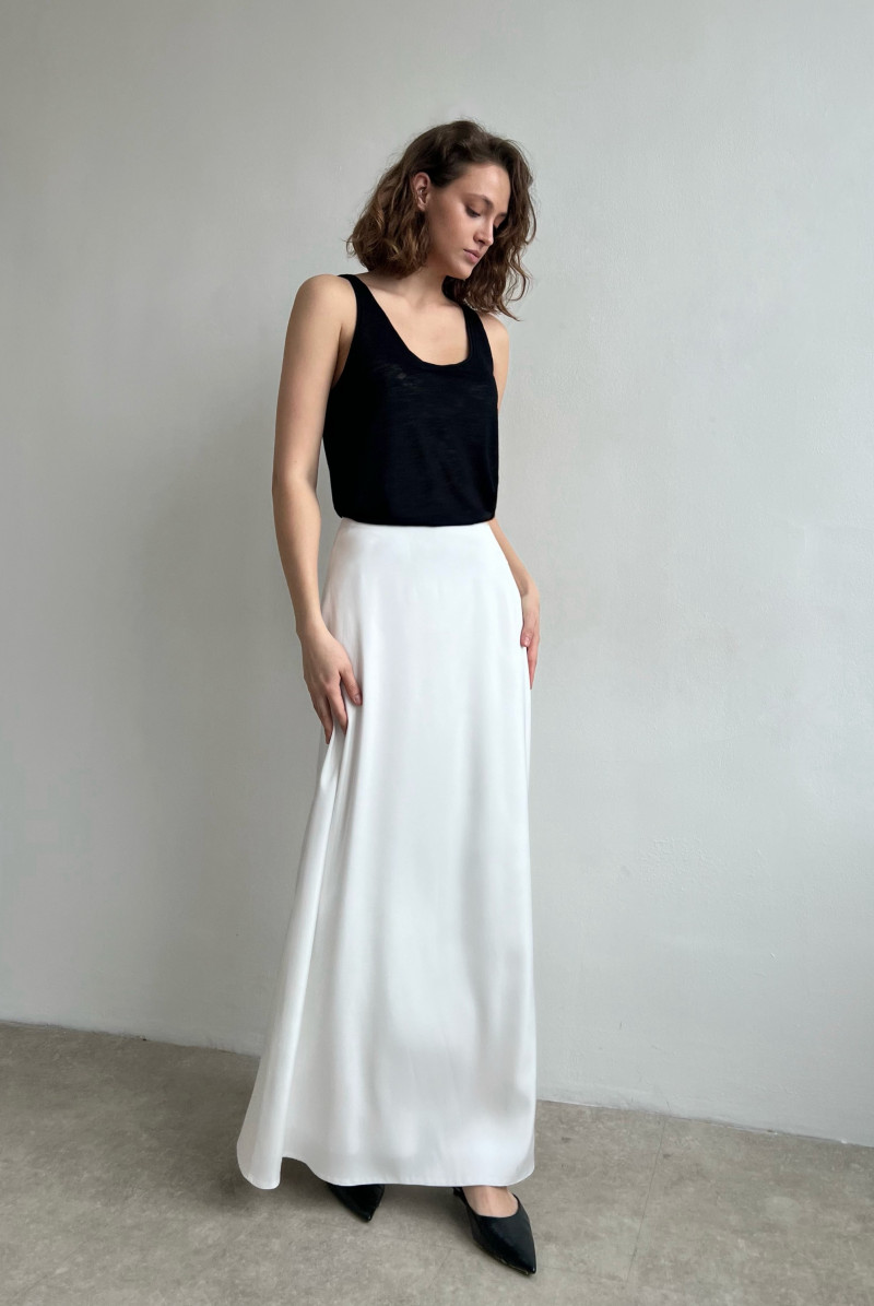 Юбка "макси" А-силуэта, без пояса (на обтачке), застежка на потайную молнию по середине спинки.