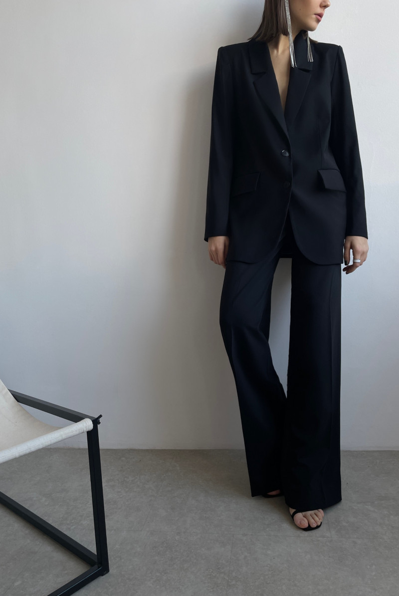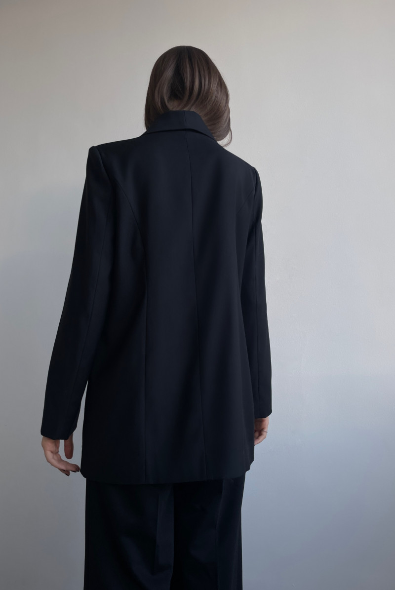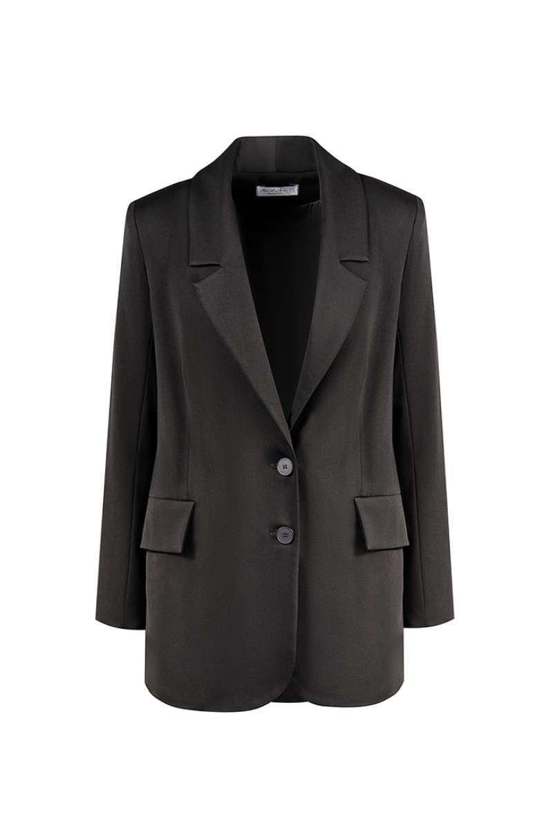 Жакет удлиненный с закругленным бортом на 2 пуговицы. Воротник в английском стиле, карманы с клапанами.
